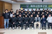 정안뉴스 황은경 기자 | 제천시민축구단 선수단과 구단주의 공식 대면식이 지난 11일 제천시청에서 열렸다. 오는 24일 창단식을 앞두고 열린 이번 대면식에는, 구단주인 김창규 제천시장과 김용기 단장, 선수단 등 관계자들이 참석했다. 선수와 코치진 구성을 마친 제천시민축구단은 구단주와 공식적으로 첫인사를 나누고, 팀의 운영 방향과 시즌 목표를 공유했다. 대면식은 선수단과 코치진 소개, 이번 시즌 운영 계획과 목표 발표, 질의응답 순으로 진행됐다. 김창규 제천시장은 인사말을 통해 선수단을 격려하며, “제천시를 대표하는 시민구단으로서 책임감을 가지고 모든 경기에 최선을 다해달라”고 당부했다. 김용기 단장은 구단 운영 방침과 비전을 소개하며, “제천시와의 협력을 바탕으로 투명하고 신뢰받는 구단을 만들어가겠다”라고 의지를 밝혔다. 한상구 감독은 “2026시즌 목표로 K4리그 상위권 진입과 리그컵 및 코리아컵 3라운드 이상 진출, 충청북도 대표 선발전 승리를 통한 전국체전 우승에 도전하겠다”라며 각오를 밝혔다. 공격수 손주원 선수는 개인 목표를 밝히며, “매 경기 공격 포인트를 기록해 팀에 기여하겠