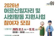 정안뉴스 황도연 기자 | 논산시는 2026년도 어르신일자리 및 사회활동 지원사업 참여자를 오는 12월 2일부터 12일까지 모집한다고 밝혔다. 2026년 모집 인원은 올해보다 304명 늘어난 4,582명으로 △지역사회 환경개선사업 등 공익형 3,127명 △보육시설 지원 등 역량활용형 1,095명 △공동체사업단 360명으로 구성된다. 유형에 따라 공익형은 65세 이상 기초연금 수급자, 역량활용형은 65세 이상 어르신(일부 사업은 60세 이상), 공동체사업단은 만 60세 이상 어르신이 신청할 수 있다. 12월 2일부터 5일까지 국민체육센터 3층에서 4개의 수행기관이 합동으로 신청서를 접수하며, 이후 8일부터 12일까지는 각 수행기관에서 방문 접수를 진행한다. 구비서류는 참여신청서, 개인정보 제공 동의서, 주민등록등본 등이며, 자세한 사항은 각 수행기관을 통해 확인할 수 있다. 시는 이번 모집을 통해 더 많은 어르신께서 사회활동을 이어가고 지역사회에 기여할 기회를 제공할 것으로 기대하고 있다. 논산시 관계자는 “어르신 일자리 참여는 건강과 소득 안정뿐 아니라 삶의 활력 증진에도 큰 도움이 된다
