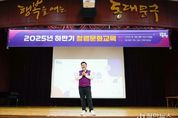 정안뉴스 안정주 기자 | 서울 동대문구는 23일 구청 다목적강당에서 2025년 하반기 청렴문화교육을 진행했다고 밝혔다. 이번 교육에는 동대문구청, 동대문구시설관리공단, 동대문문화재단 직원 등 500여 명이 참여했다. 구는 문화공연을 접목한 교육 방식을 도입해 직원들이 보다 쉽고 흥미로운 방법으로 ‘청렴’을 접하고, 효과적으로 청렴 의식과 반부패 역량을 강화할 수 있도록 했다. 첫 순서로 열린 청렴 판소리 '신 별주부전'에서는 하급 관료인 별주부의 이야기를 새롭게 각색해 청렴의 가치를 되새기게 했다. 참석자들은 “처음에는 생소했는데, 판소리를 통해 듣는 청렴 이야기가 신선하고 인상 깊었다.”라고 소감을 전했다. 이어진 '청렴 시네마'에서는 청렴교육 전문 강사가 부정청탁금지법, 이해충돌방지법, 공무원행동강령을 영화 장면과 연결해 알기 쉽게 설명하여 직원들의 공감을 이끌어냈다. 마지막으로 청렴 연극 '청렴의 갈림길'은 실제 업무에서 마주할 수 있는 상황을 극화해 어떤 선택이 올바른 선택인지 고민하게 했다. 직원들은 연극 속 상황에 몰입하며 일상 속에서의 청렴 실천을 다시금 다짐했다. 이필형
