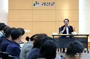 정안뉴스 황은경 기자 | 충북 괴산군은 27일 군청 대회의실에서 11월 월례간부회의를 열고 공약 및 주요 현안사업의 가시적 성과 창출을 위한 추진방향을 논의했다. 이날 회의에서 송인헌 군수는 2026년 주요업무계획에 국도비 예산이 최대한 반영될 수 있도록 각 부서의 전략적인 대응을 주문했다. 특히 공약사업과 지역 현안사업은 군민이 체감할 수 있는 성과로 이어질 수 있도록 현장 중심의 행정 추진을 당부했다. 또한 시군종합평가 대응을 위한 사전 준비의 중요성을 언급하며, 전년도 부진 지표를 철저히 분석·보완해 평가에서 보다 나은 성과를 거둘 수 있도록 각 부서에 면밀한 대응을 당부했다. 오는 11월 6일부터 9일까지 개최되는 ‘2025 괴산김장축제’ 준비 상황도 점검했다. 군은 행사 기간 동안 많은 방문객이 몰릴 것으로 예상됨에 따라, 행사장 질서 유지와 주민 안전 확보를 위해 부서 간 협업 체계를 강화하고 행정 역량을 집중하기로 했다. 경기침체로 어려움을 겪는 지역 소상공인 지원 방안도 논의됐다. 군은 11월 중 개최되는 각종 체육대회 등을 통해 유동 인구를 확대하고 소비 촉