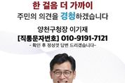 정안뉴스 안정주 기자 | 양천구가 소통 방식의 전환을 통해 구민의 목소리를 가감 없이 듣고, 손톱 밑 가시 같은 생활 속 작은 불편까지 살피고 해결하며 주민이 체감하는 변화를 만들어가고 있다. 문자 한 통에서 시작되는 소통… ‘구청장 직통 문자민원 서비스’ 직접소통·현장중시·혁신행정을 구정 운영의 핵심 가치로 내세워온 이기재 양천구청장은 2022년 8월 개인 휴대전화 번호를 공개하며 ‘구청장 직통 문자 민원 서비스’를 도입했다. 이 서비스는 구민이 구청장과 직접 소통할 수 있는 창구로, 복잡한 절차나 대기 없이 문자 한 통으로 생활 속 불편이나 건의 사항을 전달하고, 처리 결과를 안내받을 수 있다는 점에서 높은 주민 만족도를 얻고 있다. 양천구민은 파손된 보도블록, 꺼진 가로등, 통행을 방해하는 경계석, 쓰레기 무단투기 등 생활 속 불편 사항을 시간과 장소에 구애받지 않고 24시간 구청장에게 문자로 전송하고 있다. 접수된 문자는 구청장이 직접 확인한 뒤 관련 부서에 전달되며, 3일 이내 처리 부서 팀장이 결과를 안내하는 체계로 운영된다. 도입 이후 현재까지 접수된 민원은 총 1,151건