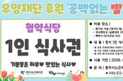 정안뉴스 황은경 기자 | 충주시노인복지관은 우양재단이 지원하는 2026년 어르신 명절 먹거리 지원사업 ‘공백없는 빨간날’ 공모에 선정됐다고 밝혔다. 선정에 따라 노인복지관은 우양재단으로부터 사업비 60만 원을 지원받아, 식사 공백이 우려되는 취약계층 노인들을 도울 수 있게 됐다. ‘공백없는 빨간날’은 명절 기간 경로식당 운영 중단 등으로 식사 공백이 우려되는 취약계층 노인에게 쿠폰을 제공해, 안정적인 식사를 할 수 있도록 지원하는 사업이다. 복지관은 지역 식당과 연계해 취약계층 노인 20명에게 식사쿠폰을 제공할 예정이다. 충주시노인복지관은 지난 2020년부터 현재까지 우양재단의 지원을 통해 먹거리 후원품과 후원금 등을 꾸준히 지원받으며 지역사회 취약노년층의 식생활 안정에 힘써오고 있다. 김웅 관장은 “명절은 취약계층 어르신들께 식사와 돌봄의 공백이 더욱 크게 느껴질 수 있는 시기”라며 “따뜻한 한 끼를 전할 수 있도록 지원해주신 우양재단에 깊이 감사드린다”고 말했다. 이어 “앞으로도 지역 어르신들이 건강하고 안정적인 일상을 이어갈 수 있도록 세심한 복지 서비스를 제공하는 데