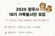 정안뉴스 안정주 기자 | 양주시자원봉사센터는 가족이 함께 참여하는 자원봉사 활동을 통해 건강한 가족문화를 조성하고 지역사회 나눔을 실천하기 위해 가족 단위로 함께 참여하는 ‘18기 가족봉사단’을 모집한다고 밝혔다. 모집대상은 양주시에 거주하는 2인 이상 가족으로 월 1회 정기적인 봉사활동 참여가 가능한 가족이며 총 15가족을 선착순 모집한다. 가족봉사단은 부모와 자녀가 함께 봉사활동에 참여하며 생활 속 나눔을 실천하는 참여형 프로그램으로 단순한 봉사활동을 넘어 가족 간 소통과 협력을 통해 유대감을 높이고 공동체 의식을 함양하는 데 목적이 있다. 제 18기 가족봉사단은 3월 발대식을 시작으로 ▲환경정화 활동 ▲계절별 나눔 활동 ▲재난안전체험 ▲시설봉사활동 ▲고구마경작활동 ▲시 축제 홍보부스 운영 등 매월 셋째 주 토요일마다 월·테마별 활동에 참여할 예정이다. 양주시자원봉사센터 이정주 센터장은 “가족이 함께 봉사활동에 참여하는 경험은 자녀에게 나눔의 가치를 자연스럽게 전달하고, 가족 간 유대감을 강화하는 계기가 된다.”며 “지역사회에 따뜻한 변화를 만들어갈 가족들의 많은 관심과 참여를 바란다.”고 전했