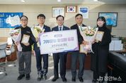 정안뉴스 안정주 기자 | 광주광역시는 23일 시청에서 ‘2025년 기부문화 활성화 유공 표창 수여식’을 열었다. 이날 수여식에는 고광완 행정부시장을 비롯해 김국환 신한은행 호남제주본부장, 송원준 맘스터치 용봉점 대표, 조혜림 한국인터넷진흥원 연구원, 임춘근 한국가스공사 과장 등이 참석했다. 올해 기부문화 유공 시장 표창은 지역사회 나눔문화 확산에 기여한 ▲㈜신한은행 호남제주본부 ▲맘스터치 전남대점 ▲한국인터넷진흥원 등 단체 3곳과 ▲임춘근 한국가스공사 과장에게 수여됐다. ㈜신한은행 호남제주본부는 자원봉사센터 김장김치 나눔봉사 등 지역사회 나눔활동에 꾸준히 참여했으며, 호우 피해 지역민들을 위한 복구지원금 1억 원을 기부했다. 맘스터치 전남대점은 장애인종합지원센터·솔잎쉼터 무료급식소 등을 통해 매월 장애인·취약계층에 200개의 햄버거를 후원하고 있다. 한국인터넷진흥원은 올해 빛고을장학재단에 1억5000만원을 후원, 지역인재 육성에 앞장섰다. 임춘근 한국가스공사 과장은 사회복지공동모금회와 협업해 전통시장 장보기 동행행사·쌀나누기 행사를 추진했다. 고광완 행정부시장은