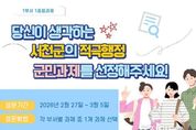 정안뉴스 황도연 기자 | 서천군은 군정 비전의 달성과 군민 체감 성과 창출을 위해, 군민이 직접 부서장 중점과제를 선정하는 투표를 실시한다. 이번 투표는 각 부서에서 자체 선정한 부서장 직무성과평가 과제를 대상으로 2월 27일부터 3월 5일까지 ‘소통24’에서 참여할 수 있다. 서천군에 관심 있는 누구나 참여 가능하며, 후보 과제 중 하나를 선택하는 방식으로 진행된다. 온라인 투표 점수(50%)와 오프라인 심사 점수(50%)의 결과를 합산해 ‘1부서 1중점과제’를 최종 선정하며, 이후 해당 과제를 집중적으로 관리할 계획이다. 황인신 기획예산담당관은 “군민이 직접 부서장 중점과제를 선정함으로써 군정에 대한 공감대가 형성되는 계기가 되길 바란다”며 “서천군을 대표하는 핵심 중점과제가 선정될 수 있도록 군민 여러분의 많은 관심과 참여를 부탁드린다”고 전했다.