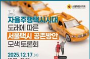 정안뉴스 안정주 기자 | 서울특별시의회 교통위원회(위원장 이병윤, 국민의힘, 동대문1)는 2025년 12월 17일 10시, 서울시의회 의원회관 제2대회의실에서 “자율주행택시시대 도래에 따른 서울택시 공존방안 모색 토론회”라는 주제로 토론회를 개최했다. 서울시의회가 주최하고 교통위원회가 주관한 이번 토론회는 이병윤 교통위원장 개회사로 시작됐으며 김동완 서울특별시택시운송사업조합 이사장의 축사와 함께 문성호 서울시 의원이 사회를 맡았다. 자율주행택시에 대한 주제 발제는 한국개발연구원(KDI) 김동영 전문연구원이 진행했으며, 이어지는 토론에서는 이경숙 교통위원회 부위원장이 좌장을 맡아 논의를 이끌었다. 토론자로는 김거중 한국교통연구원 부연구위원, 장정아 아주대학교 연구교수, 이우영 HC택시 대표이사, 박준환 국회입법조사처 팀장, 정준호 서울시 의원, 손형권 택시정책과장이 참여하여 토론이 진행됐다. 이 날 토론회에서는 자율주행 시대의 도래에 발맞춰 택시 산업의 지속 가능한 발전을 위한 준비가 필요하다는 데에 공감대를 형성했다. 아울러 기존 택시 시장과 첨단기술이 상생할 수 있는 자율주행 서비스 도입 방안을 모색하고, 관