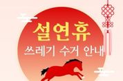 정안뉴스 안정주 기자 | 고양특례시 일산서구는 설 연휴 기간 주민 불편을 최소화하고 쾌적한 도시환경을 유지하기 위해 오는 14일부터 18일까지 5일간 생활폐기물 관리대책을 추진한다. 구는 ▲비상근무체계를 통한 신속한 청소행정 서비스 제공 ▲재활용품 분리배출·생활폐기물 감량 홍보 ▲연휴 기간 수거일 사전 안내 등을 실시해 올바른 쓰레기 배출을 유도할 방침이다. 이달 14일과 18일을 집중 수거일로 지정해 생활폐기물과 음식물 관련 폐기물을 정상 수거하고, 설 연휴 기간인 2월 15일부터 17일까지는 수거를 중단한다. 이에 따라 연휴 기간 중 생활쓰레기 배출 자제와 수거 일정 조정사항을 사전 홍보할 계획이다. 또한 연휴 기간, 총 17명 규모의 청소대책 상황반과 대응반을 편성·운영해 생활쓰레기 관련 민원과 무단투기 신고에 신속히 대응하고 쓰레기 투기 상습지역을 중심으로 순찰과 집중 수거를 병행한다. 구 관계자는 “설 연휴에도 주민들이 불편 없이 쾌적한 환경에서 명절을 보낼 수 있도록 청소행정 운영에 최선을 다하겠다”며 “주민들께서도 수거일을 준수하고 올바른 분리배출과 쓰레기 감량에 적극 협조해 주시길 바