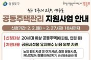 정안뉴스 안정주 기자 | 영등포구가 공동주택 주민의 쾌적하고 안전한 생활여건 조성을 위해 ‘2026년 공동주택관리 지원사업’을 추진한다고 밝혔다. ‘2026년 공동주택관리 지원사업’은 관내 공동주택관리법의 적용을 받는 20세대 이상 공동주택을 대상으로 공용시설물의 유지관리에 필요한 사업비를 지원하는 사업이다. 구는 올해 총 9억 원의 예산을 투입해 관내 공동주택 단지별로 필요 사업비의 50~70% 이내, 최대 5,000만 원까지 지원할 계획이다. 지난해 구는 공동주택관리 지원사업으로 67개 단지에 83개 사업을 지원했다. 특히 위험수목 전지, 경로당 개보수, 어린이놀이시설 개보수 등을 통해 안전사고 예방은 물론 사회적 약자와 소외계층의 주거환경 개선에 기여했다. 올해는 지난해 대비 1억 원 확대된 예산을 바탕으로 입주민의 안전 확보와 함께 사회적 약자 및 소외계층을 지원한다. 주요 지원 분야는 ▲노인 편의시설 및 여가시설 설치·보수 ▲장애인 편의시설의 설치·개선 ▲공동주택 근로자 근무환경 개선(냉·난방기, 공기청정시설, 화장실·샤워실 개선 등) ▲보수‧보강이 필요한 공동주택 시설물 개선 사업 등이다.