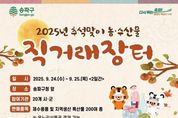 정안뉴스 안정주 기자 | 송파구는 민족 최대 명절 추석을 맞아 오는 9월 24일과 25일 이틀간 구청 앞에서 ‘추석맞이 농·수산물 직거래장터’를 운영한다고 밝혔다. 송파구 직거래장터는 전국의 특산품을 한 자리에서 합리적인 가격에 살 수 있는 기회를 제공하며 주민들이 기다리는 ‘추석 필수 장터’로 자리매김했다. 이번 장터에서는 제수용품부터 반찬거리, 전통 간식까지 200여 가지 품목을 시중가보다 10% 이상 저렴하게 판매한다. 주민에게는 실속 있는 장보기 기회를, 생산자에게는 안정적인 판로를 마련해 도농 상생을 실천하는 자리다. 올해는 송파구와 자매결연을 맺은 11개 도시와 우수농수산물 생산도시 9곳 등 총 20개 도시가 참여한다. 주요 품목은 ▲안동시 고춧가루·표고버섯 ▲하동군 매실청·산양삼 ▲공주시 밤·꿀 ▲영덕군 건어물 ▲여주시 고구마·버섯김 ▲강릉시 표고·느타리버섯 ▲완도군 김·멸치 등 전국 각지의 대표 먹거리를 송파에서 만나볼 수 있다. 직거래장터는 오전 9시부터 오후 6시까지며, 결제는 온누리 상품권, 신용카드, 현금 모두 가능하다. 서강석 송파구청장은 “장바구니 물가가 걱정되