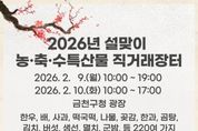 정안뉴스 안정주 기자 | 금천구는 설 명절을 앞두고 9일부터 10일까지 이틀간 금천구청 광장에서 ‘2026년 설맞이 농·축·수특산물 직거래장터’를 연다고 밝혔다. 구는 주민들에게는 합리적인 가격으로 명절 먹거리를 준비할 수 있도록 기회를 제공하고, 참여 농가에는 안정적인 판로를 제공하기 위해 이번 직거래장터를 마련했다고 설명했다. 금천구 친선도시인 △경남 남해군 △전남 고흥군 △강원 횡성군 △충남 청양군을 비롯해, 동주민센터 도농교류지인 △강원 철원군 △충북 충주시 △충남 공주시 △충남 서산시 △전남 곡성군 △인천 옹진군 등 전국 10개 지방자치단체에서 추천한 28개 농가가 이번 직거래장터에 참여한다. 참여 농가는 한우, 과일(사과, 배 등), 떡국떡, 한과, 곰탕, 김치, 장아찌, 각종 나물(고사리, 취나물 등), 표고버섯, ,막걸리, 고춧가루, 오란다, 멸치 등 220여 가지 다양한 농·축·수특산물을 판매한다. 구는 시중가 대비 최대 40% 할인된 가격으로 구매할 수 있다고 덧붙였다. 결제는 현금 및 카드로 가능하며, 일부 품목에 한해 온누리상품권도 사용할 수 있다. 유