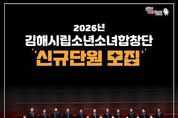 정안뉴스 김재홍 기자 | 김해시는 2026년부터 활동할 김해시립소년소녀합창단의 신입 단원을 모집한다고 19일 밝혔다. 모집 대상은 김해시에 거주하는 10세이상 19세이한 청소년으로 주 2회(화·금요일 오후 6시~9시) 진행되는 정기 연습에 성실히 참여할 수 있어야 한다. 모집 인원은 비상임 단원 10명 이내이며, 응시원서는 김해시청 누리집에서 내려받아 오는 26일부터 2월 5일 오후 5시까지 방문, 등기우편 또는 이메일로 제출하면 된다. 응시원서 제출 시 학교장과 보호자의 동의를 받아야 하며, 전형 당일 학생증과 접수증을 반드시 지참해야 한다. 제출된 서류는 반환되지 않는다. 전형은 실기와 면접으로 진행된다. 실기시험은 애국가(1~4절 중 심사위원 지정 소절)와 자유곡 1곡을 제창하며, 음감 테스트도 함께 실시한다. 실기와 면접 점수를 종합해 최종 합격자를 선발하되 실기시험 점수가 80점 이상인 지원자에 한해 합격 자격이 주어진다. 전형은 2월 6일 오후 6시 김해문화의전당 시립예술관 학습관에서 실시되며, 최종 합격자는 2월 10일 김해시청 누리집