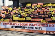 정안뉴스 안정주 기자 | 여주시는 지난 6일 '여주시 범시민 대책위원회'로부터 345kV 송전선로의 여주시 통과와 여주 남한강 3개 보 재자연화와 개방을 반대하는 두 개의 결의문을 전달받았다. 이 자리에서 이충우 시장은 “시민 여러분의 뜻을 받들어 시장으로서 중앙정부에 여주 시민의 간절한 마음을 잘 전달하겠다”는 뜻을 밝혔다. '여주시 범시민 대책위원회'는 지난 1월 말, 여주 시민의 권익 보호와 효율적인 지역 여론 형성을 위해 그동안 사안별로 운영되어 온 송전선로 통과를 반대해 온 ‘범시민대책위원회’와 여주 남한강 3개 보 재자연화와 개방을 반대해 온 ‘남한강 물이용상생위원회’를 통합한 단체다. 결의문 전달에 앞서 '여주시 범시민 대책위원회'는 같은 날 오전 10시 경기 여주시청 본관 앞에서 발대식을 갖고 ‘용인 반도체 송전선로 반대’, ‘남한강 3개보 재자연화 반대’ 등의 구호를 외치며 결의를 다졌다. 이날 발대식에는 시민단체의 대표자, 김병옥 여주시 노인회장, 여주시 읍면동 이통장연합회장을 비롯해 경기도의회 김규창 부의장과 서광범 의원, 여주시의회 경규명, 이상숙 의원 등 70여 명이 참석했다.