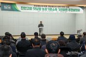정안뉴스 안정주 기자 | 진안군은 4일 군청 강당에서 지방 소멸과 기후변화 위기에 대응하고 지속 가능한 지역 활력을 창출하기 위해 재생에너지를 활용한 “진안고원 햇살팜 농촌기본소득 프로젝트” 주민설명회를 개최했다. 이번 설명회는 군 자체 재원을 확보해 진안형 농촌기본소득 기반을 다지겠다는 강력한 자립 의지를 주민들과 공유하기 위해 마련됐다. 전춘성 군수는 이날 인사말을 통해 “고령화, 청년인구 유출 심화로 지방소멸 위기를 극복하기 위해 군민 모두가 참여하는 새로운 혁신이 필요하다”고 강조하며, 재생에너지 발전수익을 활용한 진안형 농촌기본소득 지급 비전을 제시했다. 특히, 전 군수는 “진안군이 농어촌기본소득 시범사업에 선정되지 못했지만, 오히려 정부의 재정지원 없이 우리 스스로 재원을 마련하는 강력한 자립 모델을 만들어 나가야 할 시기이다”고 밝혔다. 이는 현 정부의 국정과제인 공영주차장 태양광 설치 의무, 햇빛소득마을 조성 등과 같은 국정 기조에 발맞추어 진안이 선도적으로 자립 기반을 구축하는 전국 최초의 사례를 만들겠다는 의지로 풀이된다. 특히, 이날 설명회에서는 사업 추진의 핵심 전략으로 “공공