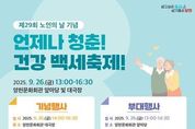 정안뉴스 안정주 기자 | 양천구는 제29회 노인의 날(10월 2일)을 앞두고 오는 25, 26일 양일간 지역 어르신들을 위한 대규모 화합의 장 ‘언제나 청춘! 건강 백세축제’를 개최한다고 21일 밝혔다. 구는 매년 노인의 날을 기념해 어르신들의 노고에 감사를 전하고 일상에 활기를 더하는 행사를 추진하고 있다. 특히 올해는 어르신들이 직접 참여하는 사전 프로그램 등 볼거리·즐길거리가 어우러진 종합 축제로 기획됐다. 사전 행사로는 25일 오후 2시부터 9개 스마트경로당이 동시에 참여하는 실시간 노래 경연대회 ‘ON Air 스마트경로당 가왕전’이 열린다. 스마트경로당은 IoT(사물인터넷) 기반 건강관리시스템과 스마트TV·화상플랫폼 등 디지털 장비를 갖춘 어르신 맞춤 복지공간으로, 이번 축제에선 어르신들이 노래 실력을 뽐내는 무대로 변신한다. 목동시니어스마트교육센터 스튜디오를 중심으로 스마트경로당 9개소를 화상 연결해 실시간 생중계 형식으로 진행될 예정이다. 26일 오후 2시 양천문화회관 대극장에서 열리는 본행사는 지역 어르신 1천여 명을 초청해 기념식과 축하공연으로 진행된다. 1부 기념식에서