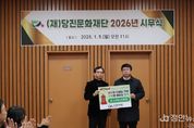 정안뉴스 황도연 기자 | (재)당진문화재단이 2026년 새해 업무의 시작을 지역사회를 위한 따뜻한 나눔으로 알렸다. 재단은 5일 오전 개최된 2026년 시무식에서 ‘희망 2026 나눔 캠페인’ 성금 전달식을 가졌다고 밝혔다. 이번 행사는 새해를 맞이해 지역사회와의 상생 의지를 다지고, 문화예술 기관으로서 공공의 사회적 책임을 다하기 위해 마련됐다. 이날 전달된 성금 200만 원은 재단 임직원들이 십시일반 정성을 모아 자발적으로 마련한 기금으로 구성됐다. 재단 구성원 전체가 한마음으로 뜻을 모아 새해 첫 공식 행사를 기부로 시작하며 나눔 문화 확산에 앞장섰다는 점에서 의미가 깊다. 재단은 이번 성금을 충남사회복지공동모금회 ‘희망 2026 나눔 캠페인’ 계좌로 기탁했으며, 전달된 성금은 지역사회 내 따뜻한 손길이 필요한 곳곳에 임직원들의 소중한 뜻과 함께 전달될 예정이다. 당진문화재단 이원철 대표이사는 “시무식을 통해 임직원이 함께 나눔의 가치를 되새기며 새해를 시작하게 되어 뜻깊다”며, “예술이 시민의 삶에 활력을 주듯, 재단 임직원들의 작은 정성이 이웃들에게는 희망의 불씨가 되길 바란다”고 전했다.