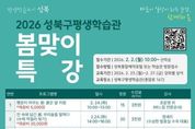 정안뉴스 안정주 기자 | 서울 성북구가 구민의 평생학습 참여를 확대하고 일상 속 평생학습 문화를 확산하기 위해 ‘2026 성북구평생학습관 봄맞이 특강’을 운영한다. 이번 특강은 문화예술, 인문교양, 생활경제 등 다양한 분야의 프로그램과 함께 환경·인권 등 사회적 가치를 주제로 한 시민교육 강좌로 구성됐다. 취미 중심 강좌를 넘어 구민이 일상에서 사회적 이슈를 이해하고 실천으로 이어갈 수 있도록 기획한 점이 특징이다. 문화예술 분야에서는 붉은 말 키링, 야생화 자수 카드 파우치, 아로마 캔들·왁스타블렛, 우리술을 말하다(수제 막걸리 빚기) 등 체험형 강좌를 운영한다. 인문교양 분야에서는 기상청 통보관에게 듣는 날씨와 기후 이야기, 맥주로 떠나는 세계 인문학 여행, 정원의 위로 등 생활과 연계된 주제를 다룬다. 시민교육 분야에서는 기후위기 시대 생태미식의 중요성, 친환경 라이프 실천(천연 주방세제 만들기) 강좌를 통해 기후위기 대응과 환경 보호에 대한 시민 인식을 높인다. ‘도슨트 특강: 고난을 이겨낸 예술가들’은 장애에 대한 이해와 공감을 확산하기 위한 장애인식개선교육으로 기획됐다. 이와 함께 절세의 기술, 금융