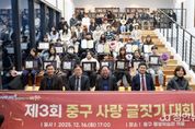 정안뉴스 안정주 기자 | 인천시 중구는 지난 16일 중구 평생학습관 3층 책뜰에서 ‘제3회 중구 사랑 글짓기 대회 시상식’을 개최했다. 올해로 3회를 맞는 ‘중구 사랑 글짓기 대회’는 학생들 스스로 발로 걸으며, 눈으로 본 중구의 역사, 문화, 자연을 아름다운 글로 표현함으로써, 애향심을 고취하고 인문학적 소양을 키울 수 있도록 돕는 데 목적을 둔 사업이다. 특히 인천시 교육청의 ‘읽·걷·쓰 캠페인’과 연계한 중구 교육혁신지구 특화 사업인 ‘중구마을 구석구석 탐방 사업’의 결실이기도 하다. 올해 대회에는 학생들의 맑은 시선으로 바라본 중구의 거리, 유구한 역사가 깃든 건축물, 바다 내음 가득한 풍경들을 다양한 형식의 글로 표현한 300여 점의 작품이 접수됐다. 치열한 심사 끝에 대상 4명, 최우수 8명, 우수 8명 등 총 20명(초등 부문 10명, 중등 부문 10명)의 입상자가 선정됐다. 시상식 말미에는 초등 부문 대상 입상자인 정은우 학생이 본인의 글짓기 작품인 ‘나의 중구 사랑 이야기’를 직접 낭독함으로써, 진정성 있는 울림을 통해 현장에 있던 관계자와 학부모들의 감탄을 자아냈다.