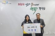 정안뉴스 안정주 기자 | 가평군 가평읍 주민 이린경 씨는 지난 20일 가평읍 행정복지센터를 방문해 취약계층 이웃돕기 성금 100만 원을 기탁했다. 6년 전 가평으로 생활 터전을 옮긴 후 현재 가평읍에서 국밥 참 맛있는 집, 빡센민물장어 식당 두 곳을 운영 중인 이린경 씨는 “큰 성금은 아니지만 지역 내에서 받은 도움을 우리 주변의 취약계층 아동들에게 돌려주고 싶어서 성금을 기탁하게 됐다”고 전했다. 장석조 가평읍장은 “사람들이 따뜻한 가평으로 이사 오신 것은 정말 잘하신 일이며, 이렇게 지역 복지 발전을 위해 소중한 성금을 전달해 주셔서 진심으로 감사드린다”고 화답했다.