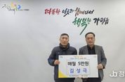 정안뉴스 안정주 기자 | 가평군 가평읍 주민 김성극 씨가 취약계층 이웃돕기 성금으로 매월 5만 원을 가평읍 행정복지센터에 정기기탁하기로 했다. 지난 20일 행정복지센터에 방문한 김성극 씨는 “직장이 서울이었지만 가평이 좋아서 이곳을 떠나지 않고 퇴직 후에도 살고 있다”며 “우리 지역 내 취약계층 아동에게 도움을 주고 싶어서 고민하다가 작은 성금이지만 매월 정기 기탁을 하게 됐다”고 전했다. 장석조 가평읍장은 “김성극님의 따뜻한 관심이 우리 지역 취약계층 이웃에게 전달될 수 있도록 가평읍 행정복지센터도 더욱 노력할 것이며 소중한 정기 기탁 진심으로 감사드린다”고 화답했다.