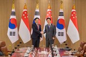 정안뉴스 안정주 기자 | 이재명 대통령은 2일 로렌스 웡 싱가포르 총리와 정상회담을 갖고 양국 간 '전략적 동반자 관계' 수립에 합의, 경제·안보 분야 협력을 심화하기로 했다. 이 대통령은 이날 용산 대통령실에서 웡 총리와의 정상회담을 마치고 공동 언론 발표를 통해 "전 세계 성장과 번영을 지탱해 온 국제 질서가 흔들리고, 기후 변화, 초국가범죄와 같은 글로벌 도전과제 앞에서 양국 간 전략적 협력이 중요하다는 데 의견이 일치했다"며 이 같이 밝혔다. 그러면서 "저와 총리님은 이러한 공동의 인식을 바탕으로 양국 간 전략적 동반자 관계를 수립했다"고 말했다. 또 "앞으로 양국은 전략적 동반자 관계에 기초해 변화하는 경제와 안보 환경에 대처하는 한편, 첨단기술 협력을 더욱 강화하고 인적 교류도 확대하기로 뜻을 모았다"고 말했다. 이 대통령은 이번 정상회담 결과에 대해 "양국은 방산기술 공동연구를 더욱 확대하기로 했다"면서 "여기에 더해 싱가포르 방산 물자 다변화 과정에서 한국이 적극 협력하고 참여하겠다는 의지를 말씀드렸다"고 설명했다. 아울러 "온라인 스캠 같은 초국가범죄를 근절하기 위해 선