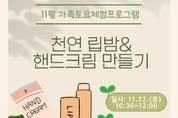 정안뉴스 안정주 기자 | 인천광역시교육청연수도서관은 11월 22일 오전 10시 30분 평생학습1실에서 가족 단위 이용자를 위한 ‘11월 가족 토요체험 프로그램’을 운영한다. 이번 프로그램은 초·중등 자녀와 부모가 함께 참여할 수 있는 강좌로, 식물성 오일과 자연 친화적 재료를 활용해 직접 천연 립밤과 핸드크림을 만드는 체험을 진행한다. 겨울철 생활 속에서 활용 가능한 제품을 직접 만들며 가족 간 유대감을 강화하고, 환경과 건강을 동시에 생각하는 생활 실천의 기회를 제공할 예정이다. 참여 신청은 11월 10일부터 연수도서관 누리집에서 선착순 접수로 진행되며, 자세한 사항은 연수도서관 독서문화과로 문의하면 된다.