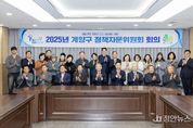 정안뉴스 안정주 기자 | 인천광역시 계양구는 지난 15일, 구정 주요 현안과 정책과제에 대한 각계 전문가의 의견을 수렴하고 향후 발전 방향을 모색하기 위해 ‘정책자문위원회 회의’를 개최했다. 이날 회의에는 윤환 계양구청장을 비롯해 윤장현 정책자문위원장, 정책자문위원, 관계 공무원 등 30여 명이 참석했다. 회의에서는 ▲작전1동 청사 리모델링 ▲공영주차장 조성 ▲계양구립종합누리센터 건립 ▲동양체육문화센터 건립 등 2025년 주요 사업 가운데 완료됐거나 변경된 사업 추진 현황을 점검했다. 또한, 2026년 예산 편성 방향과 구 재정 여건, 외부재원 확보 현황 등을 공유하며 효율적인 재정 운용 방안에 대해 논의했다. 특히, 위원들은 계양역 주변과 계산동 복개천 개발, 박촌역 일대 재개발 등 구도심 활성화를 위한 다양한 아이디어를 제시하며, 지역 경제 활성화 방안을 집중적으로 논의했다. 이와 함께 청년 참여 확대 방안과 위기 청소년 예방 등 사회적 현안에 대해서도 활발한 의견 교환이 이뤄졌다. 윤환 계양구청장은 “정책자문위원회의 전문적인 의견이 구정 주요 현안을 검토하는 데 중요한 참고가 되고 있다.”라며