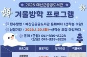 정안뉴스 황도연 기자 | 예산군은 겨울방학을 맞아 관내 초등학생을 대상으로 오는 1월 24일과 31일 토요일 이틀간 공공도서관 겨울방학 프로그램을 운영한다. 이번 프로그램은 군립도서관에서 △구강청결제·천연사탕 만들기 △말 키링 만들기를, 삽교공공도서관에서 △미니 목도리 만들기 △텀블러 가방 만들기를 각각 진행한다. 도서관은 어린이들이 프로그램과 연계된 도서를 함께 읽고 직접 작품을 완성하는 과정을 통해 창의력과 표현력을 키울 수 있을 것으로 기대하고 있다. 프로그램 참가 신청은 1월 20일 화요일 오전 9시부터 군 공공도서관 누리집 ‘참가신청’ 메뉴를 통해 가능하며, 행사 일정 등 자세한 사항은 누리집을 참고하거나 전화로 문의하면 된다. 도서관 관계자는 “이번 겨울방학 프로그램을 통해 어린이들이 책을 매개로 다양한 체험을 하고 도서관과 더욱 가까워지는 계기가 되길 바란다”고 말했다.