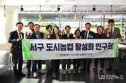 정안뉴스 안정주 기자 | 인천 서구의회 '서구 도시농업 활성화 연구회'(대표 의원: 김남원)가 06일 관내 도시형 스마트팜 현장을 방문하며 도시농업 활성화를 위한 연구 활동을 이어갔다. 이번 현장 방문은 관내 도시농업 현황 파악하고 지역에 맞는 6차산업 실증모델 자료수집 등을 위해서다. 이곳 스마트팜 농장은 2가지의 특별함이 있다. 하나는 서구 원도심의 상징인 신현동 중심지 골목에 자리잡은 인천 최초의 도심형 스마트팜이고, 또 하나는 2024년 연구회에 집중 연구과제 《지역경제 활성화와 지역특화 재생을 위해 개발한 도시농업 및 도시재생 정책을 결합한 ‘문화재생산업’과 ‘6차산업 모델’ 구축 방안 마련》을 제안했던 실증모델이다. 스마트팜과 운영을 책임지고 있는 이정의 이사장은 “9월 4일 문을 열었는데 벌써부터 여러 지자체에서 사례 벤치마킹을 위해 다녀갔다”라며 “샐러드 카페뿐만 아니라 체험교실도 입소문을 타고 문의가 많다” 말했다. 김남원 대표 의원도 "도시농업을 단순한 농작물 생산 틀에서 확장하여, 유휴지 등 지역 자원 활용을 접목한 교육·체험·관광 자원으로 전환하는 방식으로 도시농업의 교육적·사회적·경제적