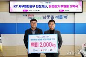 정안뉴스 안정주 기자 | 인천시 남동구는 최근 KT 서부법인본부 인천지사로부터 취약계층을 위한 백미 10kg 200포를 기탁받았다고 17일 밝혔다. 이번 쌀 나눔에서는 임직원 240명이 참여한 ‘완밥식당’프로그램을 통해 적극적으로 이뤄졌으며, 지역 사회와 상생하는 ESG 경영을 일환으로 추진됐다. 기탁된 백미는 경제적 어려움을 겪고 있는 사회복지시설 및 동 행정복지센터로 전달됐다. 김상철 지사장은 “지역 사회와 함께 성장하는 기업으로서 작은 정성으로 이웃들에게 도움이 되기를 바라며 KT 임직원들과 함께 마음을 모았다”라며 “이번 나눔이 더 많은 이웃에게 용기와 위로가 전해지길 희망한다”라고 밝혔다. 박종효 남동구청장은 “지역의 어려운 이웃을 위해 쌀 나눔 행사를 해주신 KT 임원분들께 깊이 감사드린다”라며 “후원품은 도움이 필요한 분들께 정성껏 전달해 모두가 함께하는 따뜻한 남동구를 만드는 데 소중히 사용하겠다”라고 말했다.