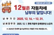 정안뉴스 안정주 기자 | 인천 서구는 2025년 12월 정기분 자동차세 15만 3천599건, 198억여 원을 부과하고 11일 고지서를 일괄 발송했다고 밝혔다. 자동차세는 차종에 따른 일정액이나 배기량에 cc당 세액을 곱해 산출하는 차량별 연세액을 기준으로 1년에 상·하반기로 나누어 2회(6월, 12월) 정기적으로 부과한다. 이번 12월 정기분 자동차세는 7월 1일부터 12월 31일까지 소유 기간에 대한 부과분으로 과세기준일(12월 1일) 현재 자동차 등록 원부상 서구에 등록된 차량(자동차, 이륜차, 기계장비) 소유자에게 부과된다. 자동차세 연세액을 미리 선납한 차량과 연세액이 10만 원 이하로 6월에 일괄 부과된 차량은 제외된다. 고지서는 우편으로 발송되며 전자고지 신청자는 전자우편 또는 모바일앱에서 확인할 수 있다. 납부 기간은 12월 16일부터 12월 31일까지다. 자동차세는 전국 금융기관 ATM/CD기, 위택스, 지로등 인터넷, 보이는 ARS를 통해 조회·납부가 가능하며 지방세입 계좌 및 가상계좌로 이체할 수 있다. 고지서를 받지 못했거나 분실했을 경우 전국 금융기관