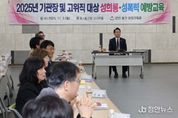 정안뉴스 안정주 기자 | 인천 동구는 지난 3일 구청 소나무홀에서 5급 이상 간부 공무원을 대상으로 성희롱·성폭력 예방 교육을 실시했다고 밝혔다. 이번 교육은 건강한 공직문화를 조성하고 공무원들의 성인식 개선을 위해 마련됐다. 홍의섭 한국양성평등교육진흥원 강사는 최근 불거지고 있는 딥페이크 등 디지털 성범죄에 대한 사례와 직장 내 성희롱 사례를 예로 들며 성희롱·성폭력 근절을 위한 예방 및 실천 방안에 대하여 교육했다. 김찬진 동구청장은 “간부 공무원의 말과 행동은 동구청 공무원 조직에 큰 영향을 미칠 수 있다”며 “항상 존중하고 배려하는 언행으로 조직 내에서 솔선수범해 주길 바란다”고 말했다. 한편, 동구는 올해 상반기 전직원을 대상으로 4대 폭력 예방교육을 실시했다.