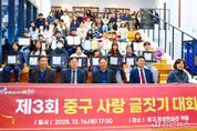 정안뉴스 안정주 기자 | 인천 중구의회는 12월 16일, 중구 평생학습관에서 개최된 제3회 중구사랑 글짓기 대회 시상식에 참석해 수상자들을 축하했다고 밝혔다. 이날 시상식에는 강후공 의원이 참석해 수상자들에게 축하 인사를 전하고, 참여 학생들과 관계자들을 격려했다. 강후공 의원은 “이번 대회를 통해 지역에 대한 이해와 자긍심이 자연스럽게 형성되고, 올바른 가치관과 표현력을 기르는 계기가 되길 바란다”라며 “중구의회도 지역 정체성과 공동체 의식을 높이는 다양한 문화·교육 활동을 지속적으로 응원하겠다”라고 밝혔다. 또한 앞으로도 주민 참여형 문화·교육 행사를 적극 지원하고, 지역사회와 소통하는 의정활동을 이어갈 계획이라고 말했다.