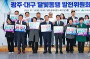 정안뉴스 안정주 기자 | 광주광역시와 대구광역시가 18일 시청 3층 소회의실에서 ‘광주·대구 달빛동맹 발전위원회’를 열어 두 도시 간 실질적인 협력 강화 방안을 논의했다. 이날 회의에서는 기존 공동 협력과제의 추진 상황을 공유하고, 신규 협력과제 심의와 정부·국회에 전달할 메시지 퍼포먼스를 진행했다. 두 도시는 지난 9월17일 국회에서 오랜 숙원사업인 달빛철도 건설사업의 예비타당성조사 면제를 촉구하는 공동선언문을 발표했다. 이어 군공항 조기 이전, 식품·뿌리·의료·로봇산업 내 특별관 운영, 달빛동맹 자원봉사 교류, 문화예술 교류 등 5개 분야 35개 과제에 대해 지속 협력했다. 이날 회의에서는 달빛동맹의 협력 강화를 위해 지난달 15일 실무회의에서 논의됐던 신규 과제 11건을 심의·의결했다. 주요 신규 협력과제는 ▲광주・대구 AX 거점도시 조성 ▲AI 융합 핵심인재 공동 양성 ▲미래모빌리티산업 육성 공동과제 발굴 ▲‘5극3특 전략’ 실현을 위한 공공기관 2차 이전 등이다. 고광완 행정부시장은 “이번 회의는 달빛동맹의 실질적 협력을 더욱 구체화하는 계기가 됐다”며 “앞으로도 두 도시가 지