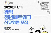 정안뉴스 안정주 기자 | 청년친화도시 관악구가 청년들이 직접 청년을 위한 정책을 발굴하고 제안하는 '제7기 관악청년네트워크' 위원 19명을 신규 모집한다. '서울특별시 관악구 청년 지원 기본 조례'에 따라 2020년부터 운영된 관악청년네트워크는 청년들의 경험과 생각을 정책에 반영하는 ‘관악구 공식 청년 거버넌스’이다. 모집 대상은 공고일 기준 관악구에 거주하거나 재직, 재학 중인 19세~39세 청년이다. 신청을 희망하는 청년은 11월 20일까지 관악구청 홈페이지(분야별정보▷청년▷청정지대)를 확인하여 신청서와 증빙서류를 담당자 이메일(cay64@ga.go.kr)로 제출하면 된다. 면접 심사는 11월 29일 실시될 예정이고, 12월 4일 최종 결과가 발표된다. 위원으로 선정된 청년들은 2026년 2월 10일부터 2027년 2월 9일까지 1년간 활동하며, 2회 연임할 수 있다. 선정된 위원은 ▲역량강화 교육(연 2회) ▲분과회의, 정책 발굴(월 1~2회) ▲청년정책 공론장(9월) 등에 참여하게 되고, 회 의 참석 수당과 우수 참여자 대상 구청장 표창 등의 혜택이 제공된다. 청년친화도시 관악의 핵심 기구