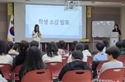 정안뉴스 황은경 기자 | 충청북도교육청 직속기관 국제교육원 부설 영재교육원은 11월 3일과 4일, 충주와 청주에서 각각 영어영재교육 수료식을 열고, 2025학년도 교육과정을 성공적으로 마무리했다. 초등학교 5학년부터 중학교 2학년 영어영재교육 참여 학생 68명(충주 36명, 청주 32명)을 비롯해 보호자와 담당 교사가 참석해, 한 해 동안의 성과를 함께 나누는 시간을 가졌다. 교육활동 동영상 시청을 시작으로, 학생들의 수료 소감 발표, 수료증 수여 등의 순서로 진행됐으며, 학생 발표 시간에는 큰 호응이 이어졌다. 탄금중학교 1학년 이하율 학생은 “매주 원어민 선생님들과 영어로 학습할 수 있어 유익하고 즐거운 시간이었어요. 벌써 종강이라 아쉽고, 내년에도 꼭 참여하고 싶어요.”라며 소감을 전했다. 올해 영어영재교육은 ▲원어민 교사와 함께하는 영어 수업 ▲리더십‧진로‧세계시민교육 특강 ▲유네스코 아시아태평양 국제이해교육원, 국립외교원 방문 등 현장 체험 학습 ▲충북 청소년 국제포럼 등 다양한 경험을 할 수 있는 과정으로 운영됐다. 참가 학생들은 환경, 사회와 법, 문학, 뉴스와 대중매체,