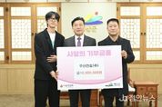 정안뉴스 황도연 기자 | 예산군은 예산군청 직장운동경기부 조정선수단이 연말연시를 맞아 덕산면에 위치한 새감마을을 방문해 100만원 상당의 후원물품을 전달했다고 밝혔다. 이번 후원은 조정선수단 지도자와 선수들이 십시일반 정성을 모아 마련한 것으로 새로 입학하는 새감마을 학생들을 위해 가방과 학용품을 준비해 전달했다. 물품을 전달받은 새감마을 학생들은 선수단의 따뜻한 관심과 온정에 밝은 웃음으로 화답했다. 조정선수단은 매년 연말 지역 보육시설을 찾아 대외적으로 드러내지 않고 꾸준한 기부와 봉사활동을 이어오며 지역사회에 나눔의 가치를 실천하고 있으며, 올해 역시 가방과 학용품을 기탁하면서 따뜻한 연말 분위기 조성에 힘을 보탰다. 군 관계자는 “지역사회의 응원과 관심에 보답하고자 매년 작은 나눔을 이어가고 있다”며 “앞으로도 직장운동경기부로서 사회적 책임을 다하겠다”고 말했다. 한편 예산군청 조정선수단은 1984년 창단 이후 각종 전국대회에서 우수한 성적을 거두며 조정 종목의 저변 확대와 군 위상 향상에 기여하고 있다.
