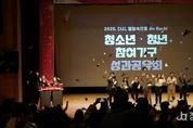 정안뉴스 안정주 기자 | 수원시청소년청년재단은 2025년 12월 20일, 청소년‧청년 참여기구 성과공유회를 성황리에 개최했다. 이번 성과공유회는‘2025. 다시 열정속으로 Go Back!’이라는 슬로건 아래, 재단 소속 40개 참여기구의 약 350명의 청소년‧청년이 참여한 가운데 한 해 동안의 활동 성과를 공유하고 자긍심을 고취하는 자리로 마련됐다. 또한 청소년 활동의 동력을 재충전하고 지속 가능한 참여 동기를 부여하는 의미 있는 시간으로 운영됐다. 사전 행사로는 △대형 포토존 △열정 고백 담벼락 △열정 고백 놀이터 등 다양한 체험활동이 진행됐다. 본 행사에서는 △우수 청소년‧청년 표창장 수여 △축사 및 격려사 △참여‧연대 퍼포먼스 △동아리 열정 스테이지 등이 이어지고, 청소년‧청년 참여기구 활동에 대한 격려와 성과를 함께 나누는 시간을 가졌다. 이재준 수원특례시장은 “청소년‧청년들의 한 해 동안 지역과 사회를 위해 주도적으로 활동하는 모습에서 대한민국의 밝은 미래를 볼 수 있었다.”며, “앞으로도 수원시는 청소년‧청년들을 위한 다양한 지원을 아끼지 않고 지속적으로 응원하겠다.”고 전했다. &nbs
