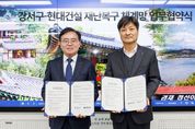 정안뉴스 안정주 기자 | 서울 강서구는 15일 폭설, 수해와 같은 자연재해에 보다 신속히 대응하기 위해 현대건설(대표이사 이한우)과 손을 맞잡았다. 구는 이날 구청에서 현대건설과 ‘민간위험시설물 긴급 복구 지원’을 위한 업무협약을 체결했다. 협약식에는 진교훈 구청장을 비롯해 김태희 현대건설 건축사업부장 등이 참석했다. 협약에 따라 양측은 자연재해 복구 활동에 적극 협력하기로 했다. 주요 내용은 피해 복구 작업에 필요한 굴삭기, 덤프, 지게차 등 장비 긴급 투입, 신속한 복구를 위한 대민지원 등이다. 진교훈 구청장은 “이번 협약으로 예기치 못한 자연재해가 발생했을 때 신속한 복구가 이뤄질 것으로 기대한다”며 “자연재해 대응 안전망을 더욱 공고히 구축해 나가겠다”고 말했다. 한편, 업무협약식과 함께 이웃돕기 성금 전달식도 진행됐다. 현대건설과 인창개발(회장 김영철)은 어려움에 처한 지역 주민을 위해 써달라며 성금 3천만 원을 기탁했다.