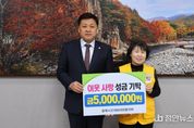 정안뉴스 황은경 기자 | 단양군의회가 11일 대한적십자사에 성금 500만원을 기탁했다. 이번 성금은 충북시군의회의장협의회가 지난해 해외연수비 등을 절감해 마련한 것으로 대한적십자사 단양군지구협의회를 통해 지역의 어려운 이웃에게 전달될 예정이다. 이상훈 의장은 "민족 최대 명절인 설을 맞아 충북시군의회의장협의회에서 지역에 온정을 나누기 위해 준비한 성금"이라며 "병오년 새해에도 소외되는 이웃 없이 군민 모두가 따뜻하고 행복한 공동체가 될 수 있도록 최선을 다하겠다"고 말했다.