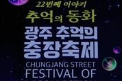 정안뉴스 안정주 기자 | 가을밤, 광주 동구 도심이 한 편의 동화로 물들었다. 광주 동구는 ‘추억의 동화’를 주제로 열린 제22회 광주 추억의 충장축제가 금남로와 충장로 일대를 동심으로 물들이며, 시민과 관광객들이 함께 웃고 추억을 나눈 광주의 대표 명품축제로 거듭났다고 밝혔다. 올해 충장축제는 지난 15일부터 19일까지 닷새간 ‘추억의 동화’를 주제로 충장로, 금남로, 5·18민주광장, 국립아시아문화전당 등 동구 전역에서 펼쳐졌다. 축제는 ‘우리의 기억 속에서 잠들어 있던 동화 속 이야기들이 이 가을, 충장로를 따라 은은한 빛을 머금고 깨어난다’는 메시지 아래, 각 공간은 어린 시절의 동화를 떠올리게 하는 조명과 오브제로 채워졌다. 거리 곳곳에는 ‘이상한 나라의 앨리스’, ‘백설공주’, ‘선녀와 나무꾼’ 등 우리에게 친숙한 이야기들이 예술적 조형물로 시민들과 만났으며, 광주은행과 함께 신서석로에 마련한 ‘추억의 테마거리’도 7080 추억을 선사하며 시민들의 발길과 눈길을 동시에 사로잡았다. ●참여로 완성된 축제… 시민 체험 프로그램 ‘후끈’ 올해 충장축제의 진정한 주인공은 바로 시민이었다. 시민들은 주먹밥 콘