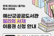 정안뉴스 황도연 기자 | 예산군 공공도서관은 지역주민의 디지털 독서 접근성을 높이고 생활 속 독서문화 확산을 위해 ‘구독형 전자책 지원 사업’을 운영한다. 최근 디지털 콘텐츠 이용이 늘면서 시간과 장소 제약 없이 독서를 즐길 수 있는 비대면 독서 서비스 수요가 증가하고 있으며, 이에 군은 전자책 이용 기회를 확대하고 함께 읽고 나누는 독서공동체 문화를 확산하기 위해 이번 사업을 마련했다. 사업은 3월부터 12월까지 운영되며, 군 공공도서관 정회원(도서관 카드 발급 회원)을 대상으로 구독형 전자책 서비스 이용권을 차수별로 배부한다. 이용자는 PC와 모바일 기기를 통해 최신 베스트셀러와 자기계발서, 아동·청소년 도서, 오디오북 등 다양한 콘텐츠를 언제 어디서나 이용할 수 있다. 이용권은 차수별 선착순 50명에게 배부하며, 1인당 1매로 3개월간 사용이 가능하다. 1차 접수는 3월 3일 오전 9시부터 시작하며 도서관 누리집 행사참가신청 메뉴에서 신청하면 된다. 군 관계자는 “구독형 전자책 서비스를 통해 주민 누구나 부담 없이 독서를 접하는 계기가 되길 바란다”며 “앞으로도 전자책