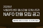 정안뉴스 황정혜 기자 | 부산 강서구는 서부산 최초의 클래식 전문 공연장인 낙동아트센터와 함께할 ‘낙동아트센터 페스티벌 오케스트라(NAFO)’ 단원을 공개 모집한다고 밝혔다. 이번 모집을 통해 강서구는 수준 높은 음악적 역량과 열정을 지닌 연주자들로 오케스트라를 구성해, 향후 낙동아트센터에서 품격 있는 클래식 공연을 시민들에게 선보일 계획이다. NAFO는 내년 1월 낙동아트센터 정식 개관 기념 무대에서 말러 교향곡 제8번, 오페라 아이다, 발레 백조의 호수 등 세계적인 명작을 연주할 예정이다. 이에 앞서 오는 12월 24일, 말러 교향곡 제8번과 베토벤 교향곡 제9번 4악장을 연주하는 프리뷰 콘서트를 개최해, 정식 개관 전부터 웅장한 음악의 울림을 선사하며 낙동아트센터에 대한 시민들의 기대감을 높일 전망이다. 모집 분야는 ▲오케스트라 악장 ▲수석 ▲단원 ▲기획지원단원이며, 만 18세 이상이면 누구나 지원 가능하다. 접수 기간은 10월 10일부터 16일 오후 5시까지로, 강서구청 홈페이지에서 참여신청서를 내려받아 전자메일로 제출하면 된다. 전형은 기획지원단원의 경우 면접, 오케스트라 단원의 경우 실기