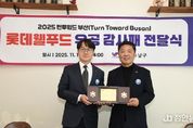정안뉴스 황정혜 기자 | 부산 남구는 지난 11월 11일, 롯데웰푸드(주)에 감사패를 수여했다고 밝혔다. 롯데웰푸드(주)는 2020년 9월, 빼빼로데이와 연계해 남구·부산지방보훈청·롯데제과㈜ 간 '턴 투워드 부산(Turn Toward Busan)' 업무협약을 체결한 이후, 매년 ‘턴 투워드 부산’ 엠블럼이 새겨진 기획 상품을 제작해 평화의 메시지를 전해왔다. 또한 해외 및 국내 참전용사에게 감사 편지를 담은 선물 패키지를 제작해 감사한 마음을 전달하며 기업의 사회적 책임을 실천하고 있다. 오은택 남구청장은 “그동안 ‘턴 투워드 부산(Turn Toward Busan)’과 유엔평화문화특구 가치 확산을 위해 함께해 준 롯데웰푸드에 감사드린다”며 “앞으로도 다양한 기관과 협력하여 평화의 의미를 이어가고 주민들이 공감할 수 있는 남구를 만들어가겠다”고 전했다.