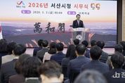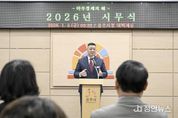 정안뉴스 황도연 기자 | 공주시는 2일 시청 대백제실에서 2026년 시무식을 열고 새해 공식 업무를 시작했다. 이날 시무식에는 최원철 시장을 비롯해 부시장, 국·소장, 부서장, 읍면동장, 본청 팀장 등 150여 명의 공직자가 참석해 병오년 새해의 출발을 함께했다. 행사는 개회와 국민의례를 시작으로 공무원 헌장 낭독, 신년사 순으로 진행됐으며, 참석자들은 공직자로서의 책임과 사명을 되새기며 새해 각오를 다졌다. 최원철 시장은 “2026년은 민선 8기의 성과를 완성해 가는 중요한 해이자, 공주의 다음 도약을 준비해야 하는 분기점이 되는 해”라며 “현장에 답이 있다는 원칙 아래 시민의 삶을 중심에 둔 행정을 흔들림 없이 추진해 나가자”고 말했다. 또한 올해 시정 운영의 각오로 ‘마부정제(馬不停蹄)’를 제시하며 “달리는 말이 말굽을 멈추지 않듯 현재의 성과에 안주하지 않고, 변화의 완성을 향해 쉼 없이 정진해야 한다”고 강조했다. 시는 이번 시무식을 계기로 전 공직자가 하나 된 마음으로 새해 시정 운영에 임하며, ‘강한 공주, 행복한 시민’이라는 목표를 향해 시민이 체감할 수 있는 변화를 만들
