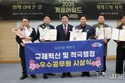 정안뉴스 황도연 기자 | 계룡시는 지난 12월 31일 시청 대회의실에서 ‘2025년 하반기 계룡시 규제혁신 및 적극행정 우수공무원 시상식’을 열고, 창의적이고 능동적인 업무 추진으로 시민 불편 해소와 행정 혁신에 기여한 공무원들을 격려했다. 이번 하반기 규제혁신 및 적극행정 우수사례는 과제의 난이도, 효과성, 확산 가능성 등을 종합적으로 심사해 적극행정위원회 의결을 거쳐 최우수 1건, 우수 2건, 장려 2건 등 총 5건이 선정됐다. 최우수상은 ‘선제적 도로 빗물받이 및 사면 정비로 도로 침수 및 토사 유출 제로화’를 추진한 김진태 도로관리팀장이 수상했다. 해당 사례는 최근 이상기후로 인한 국지성 집중호우로 반복되던 침수 피해에 대응해, 사전 점검과 선제적 정비를 실시함으로써 2025년 도로 침수와 토사유출을 모두 ‘0건’, 제로화 한 점에서 높은 평가를 받았다. 우수상으로는 ▲지자체 최초 산·학·연·관·군 협력 모델 ‘K-GDEX 2025’ 추진 ▲‘단수 위기의 누수 사고, 전화위복의 계기로 삼다’가선정됐다. 장려상으로는 ▲시민 이동권 확대를 위한 엄사면 순환버스 도입 및 행복택시 정액