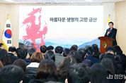 정안뉴스 황도연 기자 | 박범인 금산군수는 2일 금산군청에서 열린 시무식에서 “2026년 붉은 말의 해 금산에 대한 자부심을 가지고 군정의 밝은 미래를 열어가자”고 당부했다. 그러면서 아름다운 금산, 건강한 금산, 신명나는 금산, 안전한 금산, 순박한 금산에 대해 소개하며 지역에 대한 자랑스러운 마음을 갖자고 했다. 이와 관련해 박 군수는 아름다운 금산군의 비단산과 비단강에 대한 여러 언급을 인용했다. 이어, 최고의 건강선물 인삼과 장수의 상징이자 천연기념물인 은행나무에 관해 소개하며 건강한 금산을 강조하고 금산농악과 금산다락원을 통해 신명나는 금산에 관해 이야기했다. 또한, 금산은 안전성이 필요한 위성통신 기지국이 들어선 만큼 안전한 곳이라는 점을 언급하고 과거 범죄없는 마을 선정사례를 들어 순박한 금산을 강조했다. 금산군은 지난 2003년도 검찰청이 선정한 범죄없는마을에 전국 지자체 중 가장 많은 25개 마을이 선정됐다. 박 군수는 “이런 훌륭한 발전동력을 가진 금산의 발전을 위해 힘을 내야 한다”며 “세계를 향한 과감한 도전으로 지역의 희망과 행복을 키우자”고 전했다.