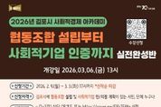 정안뉴스 안정주 기자 | 김포시가 사회문제 해결을 위한 참신한 아이디어와 실행력을 갖춘 사회적경제기업 육성을 위해 ‘2026년 김포시 사회적경제 아카데미’를 개설하고, 오는 3월 3일까지 수강생을 모집한다. 이번 아카데미는 평소 사회적경제에 관심 있는 김포시민은 물론, 연내 협동조합 설립과 사회적기업 인증을 준비 중인 관내 기업, 단체라면 누구나 신청할 수 있다. 교육 과정은 ▲사회적기업 개념 및 인·지정 요건 ▲협동조합 개념, 설립 절차 및 인가 요건 ▲2026년 지원제도 등 사회적경제에 대한 기본 개념을 습득하고, 연내 진입을 위한 사전 준비가 가능하도록 실전형으로 구성했다. 특히 전문가 1:1 멘토링을 통해 ▲사업 아이템의 경쟁력 및 지속가능성 진단 ▲정관, 사업계획서 등 필수서류 작성 ▲심사 및 현장실사 대비 전략 등 기업 맞춤형 컨설팅이 후속으로 지원될 예정이다. 수강신청은 3월 3일까지 온라인으로 가능하며, 자세한 사항은 김포시청 홈페이지를 참조하거나 김포시청 지역경제과로 문의하면 된다. 김포시는 ‘일자리창출을 위한 재정지원’을 비롯해 ‘전략모델 개발비’, ‘교육·컨설팅’,