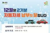 정안뉴스 안정주 기자 | 연수구는 자동차 등 약 12만 4천 대를 대상으로 2025년 12월 정기분 자동차세 184억 원을 부과했다. 이번에 부과된 자동차세는 12월 1일 현재 연수구에 등록된 자동차, 125cc 초과 이륜차, 건설기계의 등록원부상 소유자에게 부과되며, 연간 자동차세를 한꺼번에 미리 납부(1·3·6·9월)한 차량은 과세 대상에서 제외된다. 납부 기한은 이달 31일까지이며, 전국 금융기관의 현금자동입출금기, 금융결제원, 위택스, 자동응답시스템, 앱 등을 통해 계좌이체나 신용카드로 낼 수 있다. 자동차세 관련 자세한 사항은 연수구 세무과 자동차세팀으로 문의하면 된다. 연수구 관계자는 “납부 기한이 지나면 3%의 납부지연가산세가 부과되고, 번호판 영치 등 불이익이 발생할 수 있는 만큼 기한 내 납부해 주시기를 바란다.”라고 당부했다.