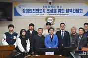 정안뉴스 안정주 기자 | 광주 북구의회 정달성 의원(용봉·매곡·삼각·일곡동/더불어민주당)이 13일 이숙희 의원과 함께 ‘장애인친화도시 조성을 위한 정책간담회’를 개최했다. 이번 간담회는 북구 장애인친화도시 조성의 현주소를 점검하고, 현장의 다양한 의견을 바탕으로 민·관·정 차원의 공감대 형성과 실질적인 정책 방향을 모색하기 위해 마련됐다. 이날 간담회에는 정달성·이숙희 의원을 비롯해 오방장애인자립생활센터장, 예그리나장애인센터장, 장애인문화관광센터 사무국장, (사)한국신장장애협회 광주협회 사무처장, 전남대 동아리 ‘내일프로젝트’ 대외협력부장, 북구청 관계공무원 등이 참석했다. 참석자들은 복지·문화·교통·교육 등 다양한 분야에서의 장애인 친화 정책에 대해 논의했다. 이숙희 의원은 “현재 물리적 환경개선을 위한 ‘무장애 도시 조성 조례’는 있지만, 행정서비스 중심의 정책은 아직 부족한 실정”이라며 “현장의 목소리를 반영해 장애인 복지 향상을 위한 소프트웨어 중심의 정책을 마련하겠다”고 말했다. 정달성 의원은 “이번 간담회는 장애와 비장애의 경계를 허무는 ‘북구형 포용도시’로 나아가는 첫걸음”