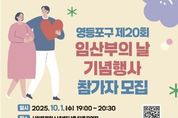 정안뉴스 안정주 기자 | 영등포구가 오는 10월 1일 오후 7시, 시립문래청소년센터 달촌공연장에서 ‘제20회 임산부의 날 기념행사’를 연다고 밝혔다. 행사는 임신과 출산의 소중함을 되새기고, 임산부와 가족이 함께 힐링할 수 있는 특별한 자리로 마련했다. 첫 순서는 순천향대학교 부천병원 산부인과 김태희 교수의 특강이다. ‘출산 준비부터 회복까지, 건강 체크리스트’를 주제로 ▲출산 전 준비사항 ▲산모 건강 관리법 ▲출산 직후 회복 요령 ▲가족이 함께할 수 있는 지원 방법 등 실질적이고 유익한 정보를 전한다. 이어 팝페라 듀엣 ‘뚜뚜빠빠’가 무대에 올라 ‘넬라 판타지아’, ‘오 솔레미오’ 등 친숙한 선율을 선사하며 따뜻한 위로와 감동을 선사한다. 행사장에는 다채로운 체험부스도 운영된다. ▲1년 후 아기에게 보내는 편지 ‘느린우체통’ ▲예비 아빠의 임부복 체험 ‘아빠는 임신 중’ ▲임산부 즉석 기념사진 ‘주인공은 나야 나’를 운영해 임산부와 가족이 특별한 추억을 남길 수 있다. 참여한 임산부에게는 비대면 손태교 프로그램으로 ‘토수니 애착인형 바느질 키트’도 제공된다. 참가자는 교육 영상을 참고해 가정에서
